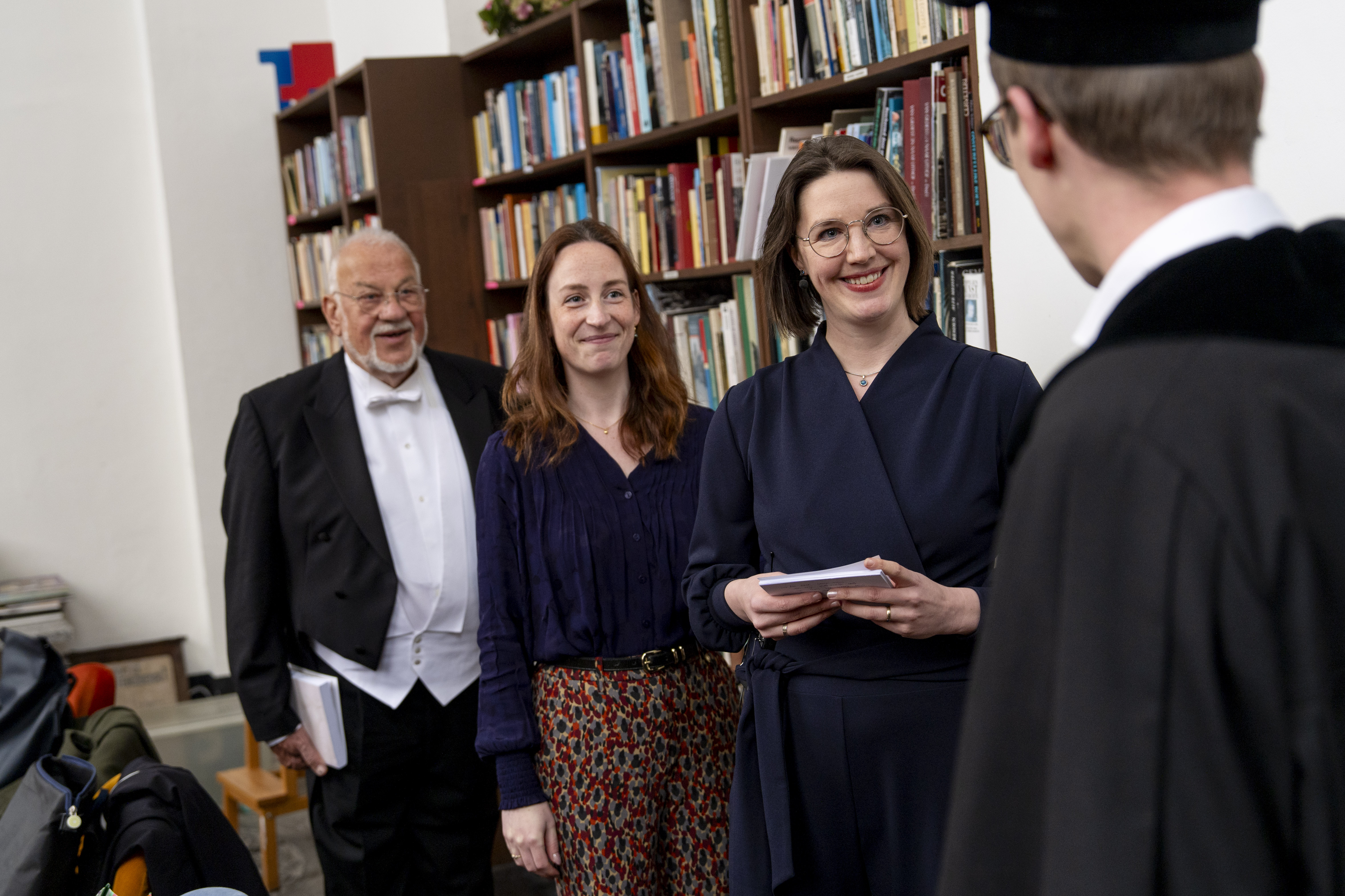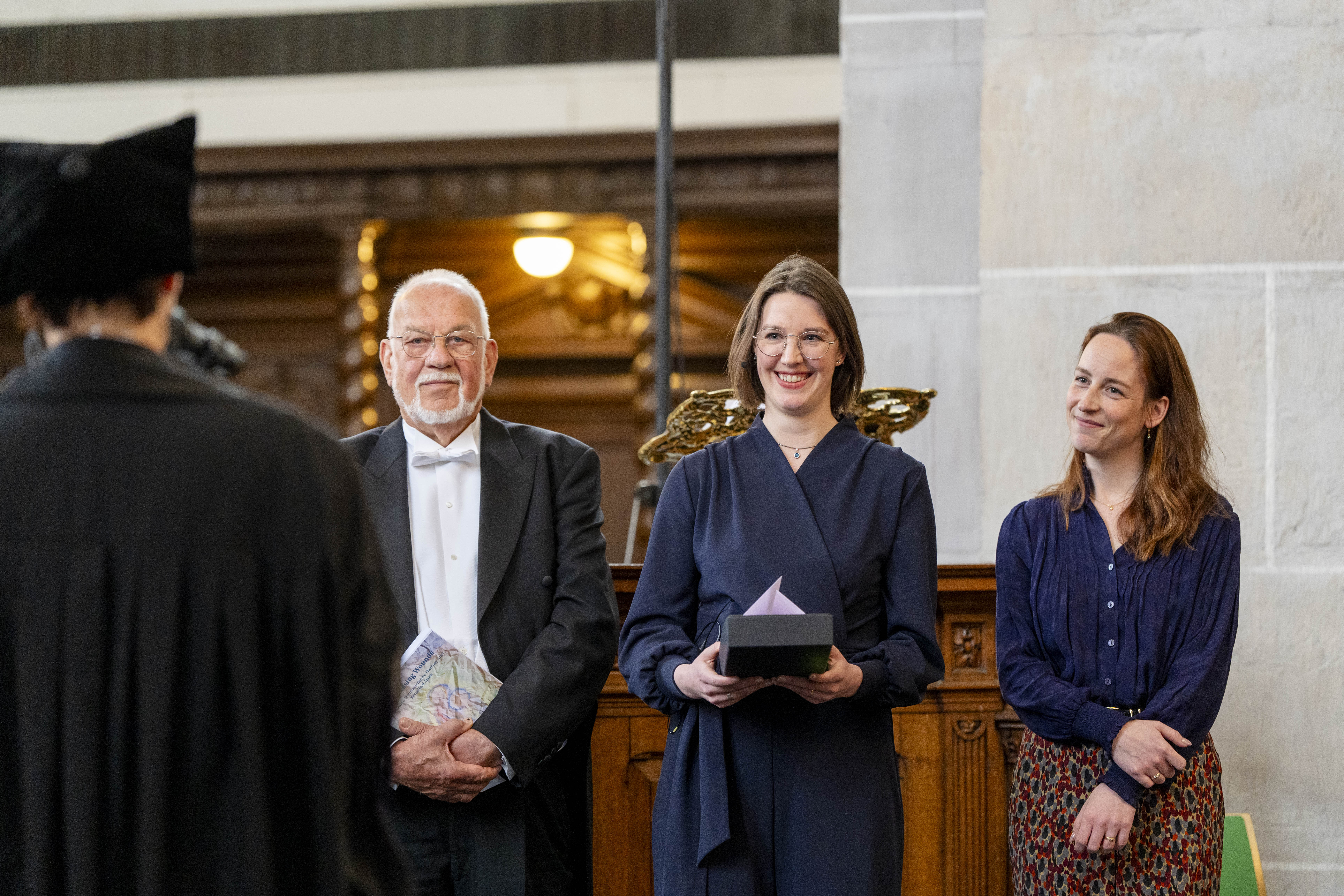 En de Grote Dag? Die brak vanzelf aan, zoals dat onvermijdelijk gaat. De promotie-bibbers waren niet verdwenen, maar er ontstond een ander verhaal, een andere werkelijkheid naast. Een werkelijkheid waarin er zo ontzettend veel lieve steun was en een werkelijkheid waarin ik de regie had over de dag, zowel in het lekenpraatje als ook tijdens de discussie. Natuurlijk was het nog steeds heel spannend om daar te staan – én ik genoot. Ik genoot van alle lieve mensen die ik in de Pieterskerk zag zitten. Ik genoot van het mogen vertellen en toelichten. Ik genoot van alle blije felicitaties en het vieren achteraf, waardoor in mij ook steeds meer het besef ontstond: het zit erop, ik heb het afgerond. Hora est!
